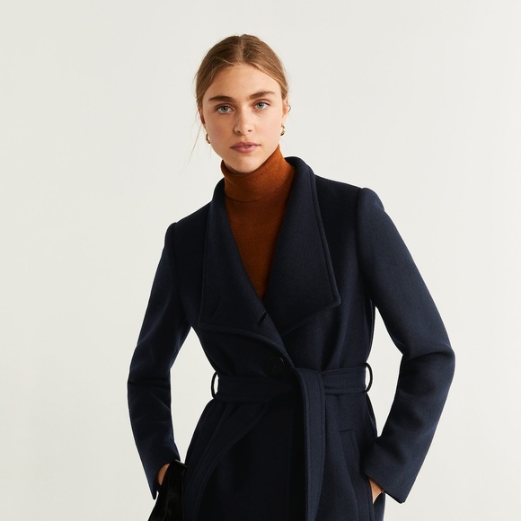 Belted navy wool coat Clearance, Belted Wool Coat | Belted coat outfit Clearance