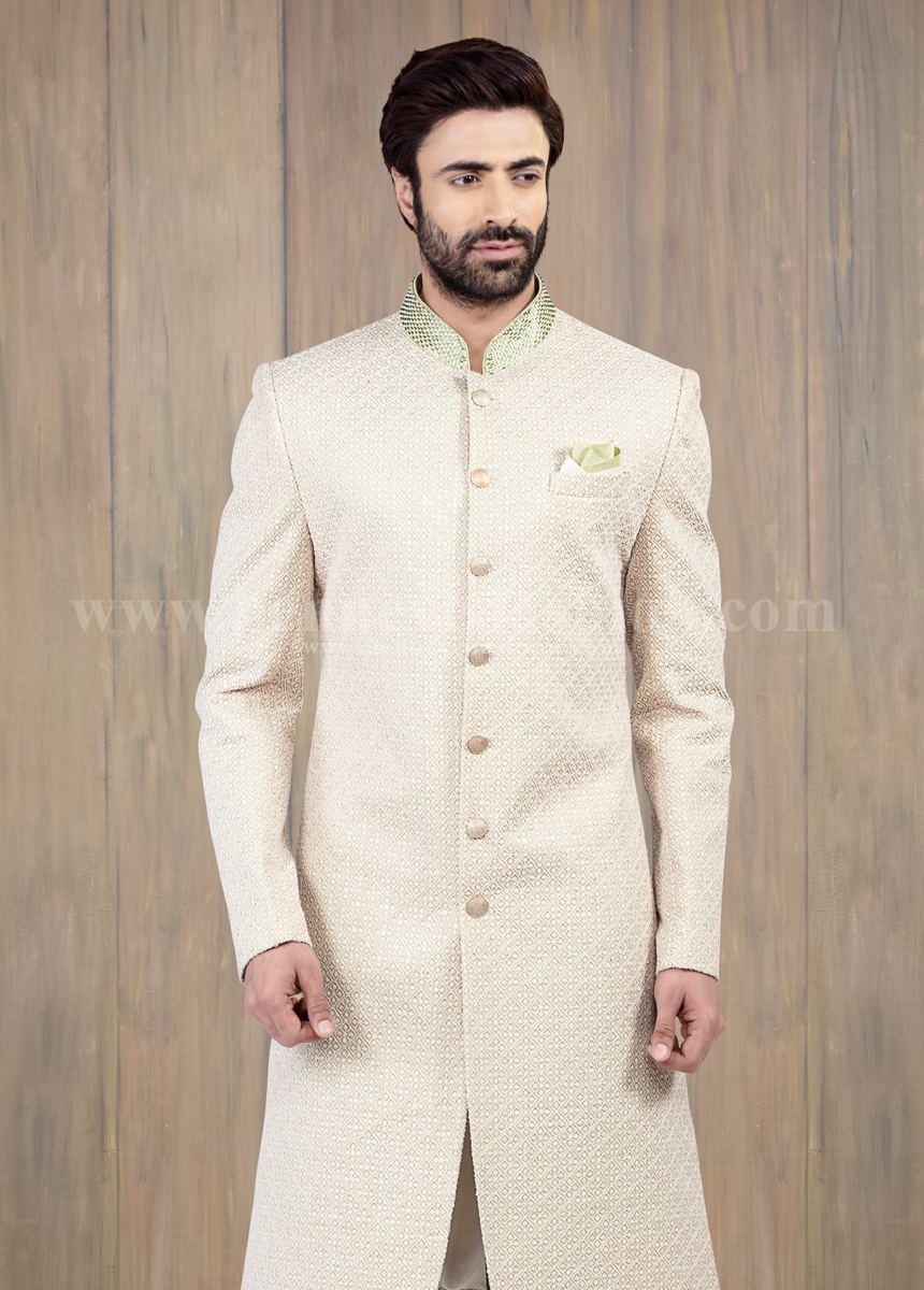 Lucknowi sherwani Clearance, Light green lucknowi sherwani for Clearance