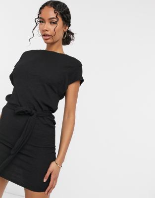Mango kleider schwarz Clearance, Mango – Schwarzes Kleid mit Fledermausärmeln und Taillenschnürung | ASOS Clearance