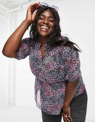 Chiffon bluse v ausschnitt Clearance, Simply Be – Bluse aus Chiffon mit Schößchen und V-Ausschnitt in Schwarz mit Blumenmuster | ASOS Clearance