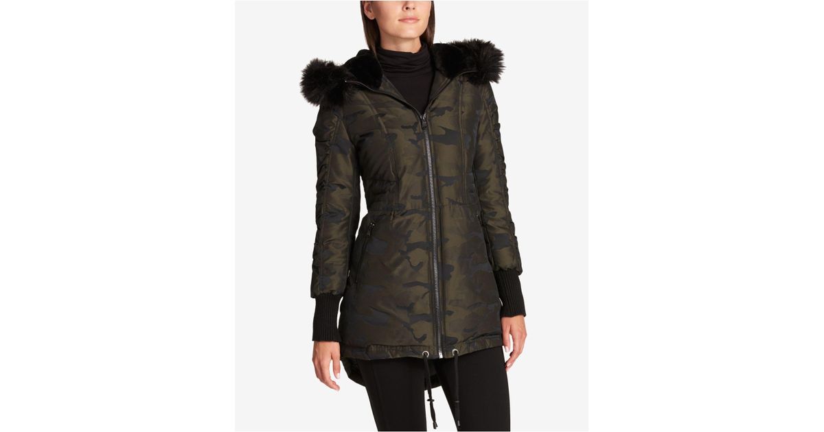 Dkny camo puffer coat Clearance, DKNY Faux-Fur-Trimmed Camo-Print Puffer Clearance
