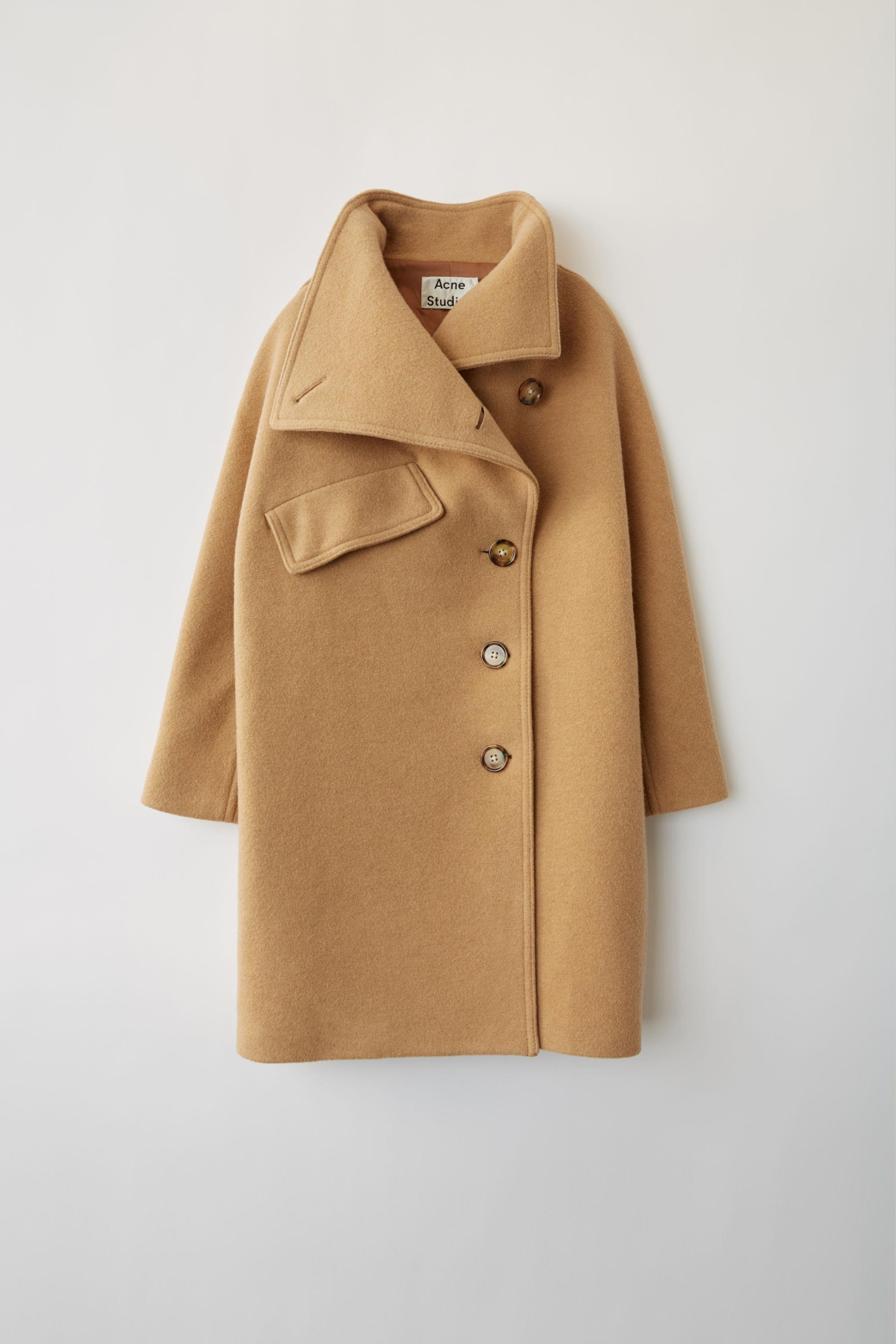 Camel funnel coat Clearance, Platform Felt Funnel Neck Coat Clearance