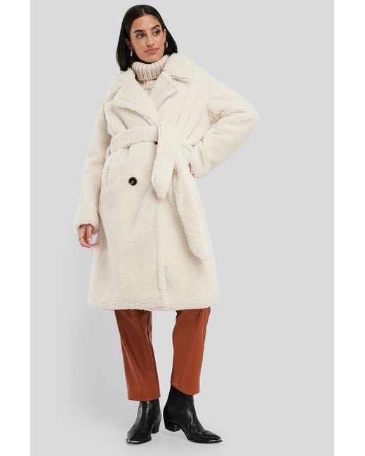 Belted long teddy coat Clearance, NA-KD Synthetic White Belted Long Teddy Clearance