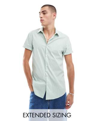 Grün weiß gestreiftes hemd Clearance, ASOS DESIGN – Schmal geschnittenes Workerstyle-Hemd in Grün und Weiß gestreift Clearance