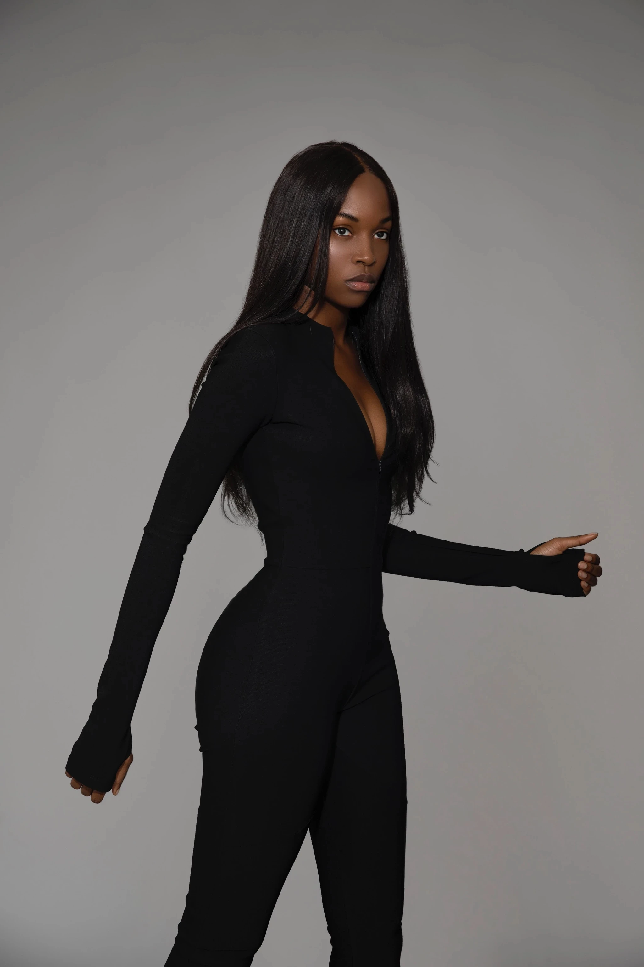 - Black long sleeve tight jumpsuit
