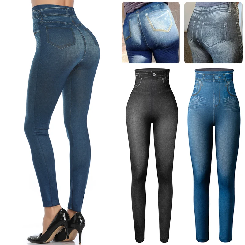 Faux denim leggings Clearance, High Waist Womens Faux Denim Jean Clearance