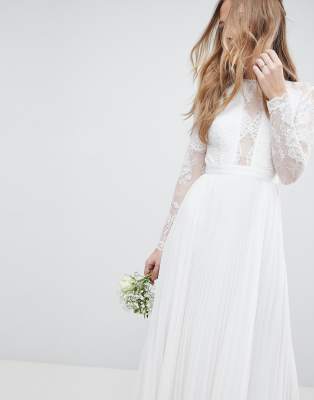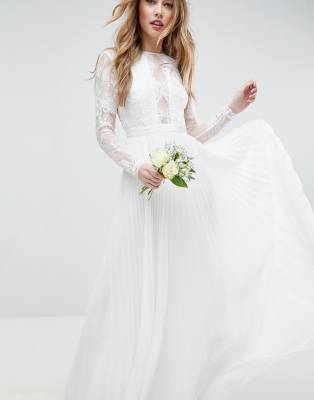 - Asos edition iris long sleeve lace bodice maxi wedding dress with pleated skirt sale