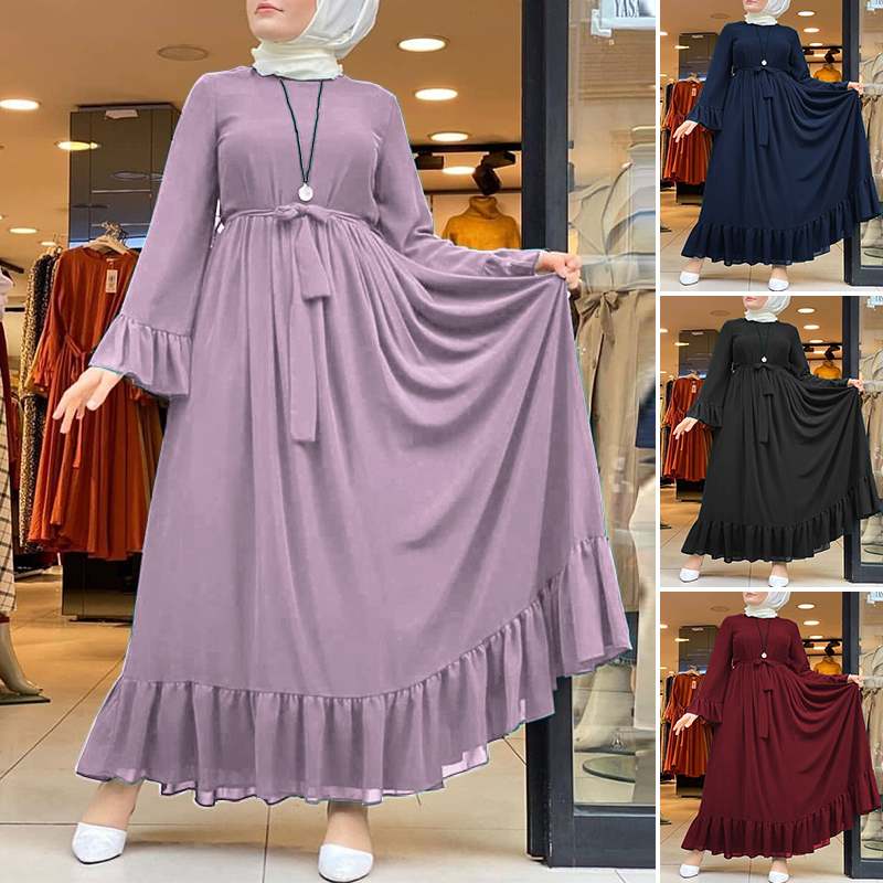 Ruffle dress muslimah Clearance, Women Muslim Dress Floral Printed Clearance