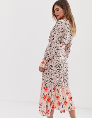 - Dark pink wrap midi dress in mixed print clearance