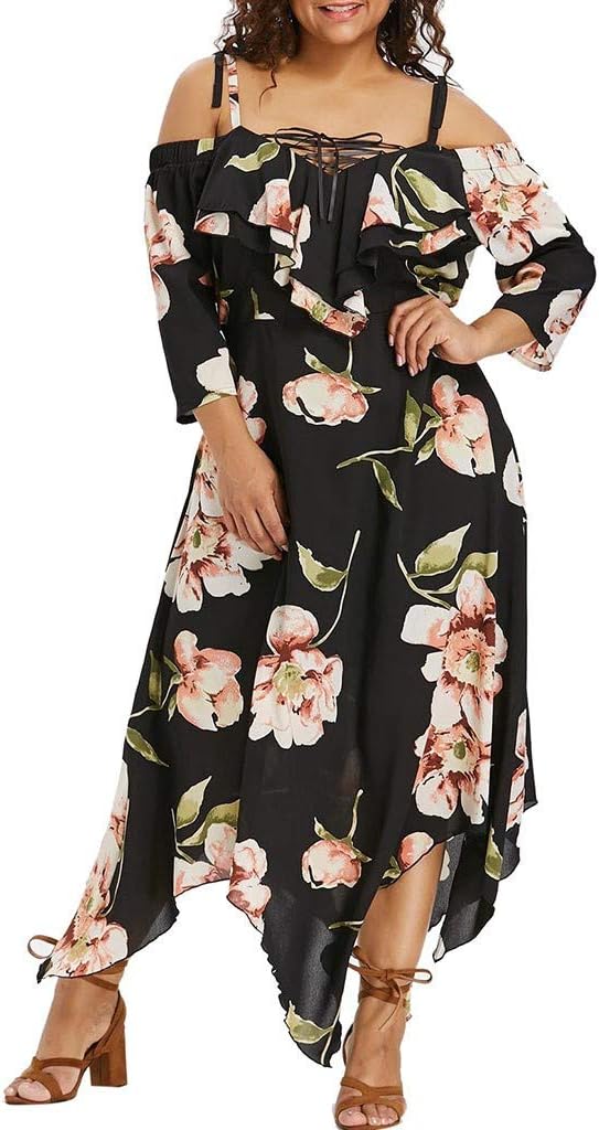 Cold shoulder plus size summer dresses Clearance