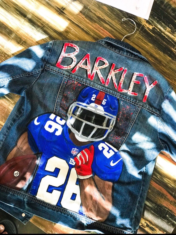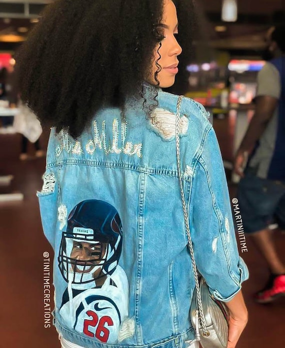 Custom jean jacket football Clearance, Custom painted football player denim Clearance