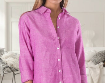 Pink linen tops Clearance, Pink Linen Shirt Clearance
