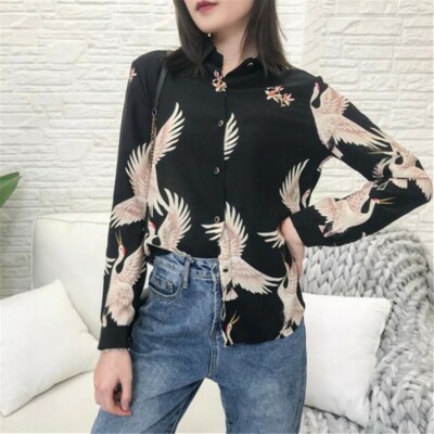 Ebay long sleeve tops Clearance, Women Girls Japanese Crane Blouse Shirt Clearance