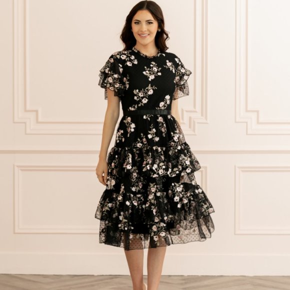 - Embroidered tiered mesh dress rachel parcell
