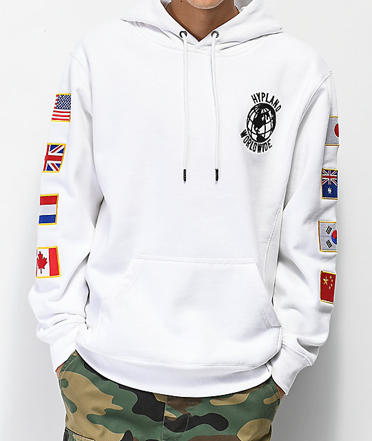 White hoodie with flags on sleeves Clearance, Buy Hypland shop Hypland on Globalily.com Clearance