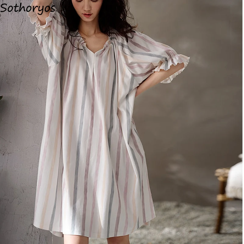 Sleeping dress design Clearance, Nightgowns Women Plus Size 3XL Striped Clearance