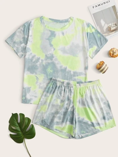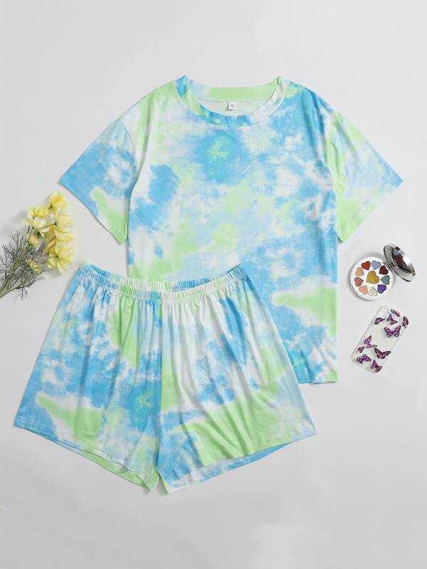 Shein tie dye pajamas Clearance, Plus Tie-Dye Wash Tee \u0026 Ruffled Shorts Clearance