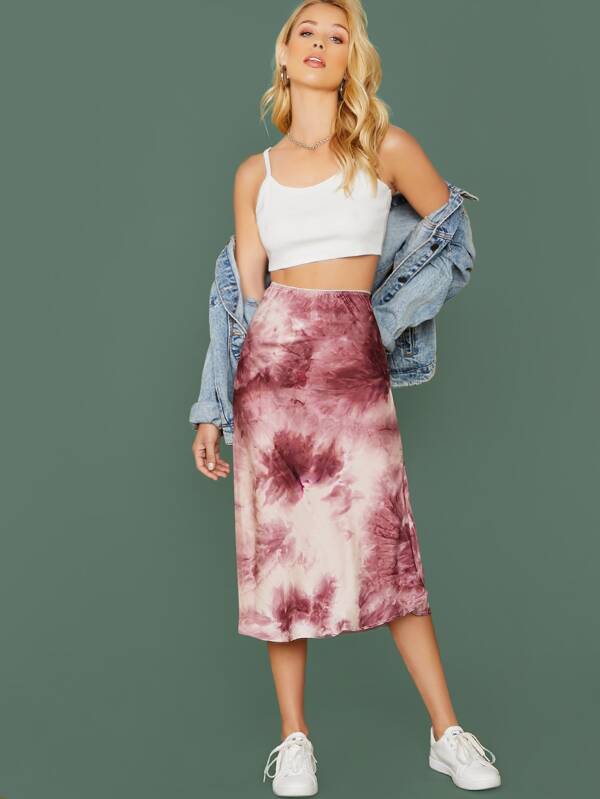 - Tie dye satin midi skirt free shipping