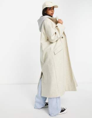 Stoffmantel mit kapuze Clearance, ASOS DESIGN Petite – Locker geschnittener Mantel mit Kapuze und Bindegürtel in Pilzbraun Clearance