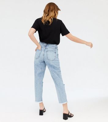 Pale mom jeans Clearance, Petite Pale Blue Ripped Knee Waist Clearance