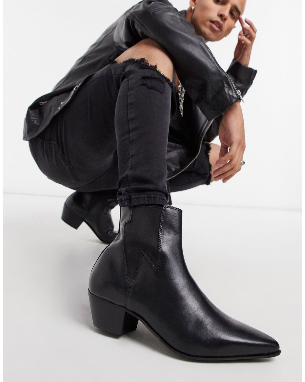 Stiefel kubanischer absatz Clearance, ASOS – chelsea-stiefel im westernstil aus em leder mit kubanischen absätzen und blitz-detail in Schwarz für Herren | Lyst DE Clearance