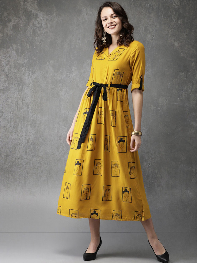 Anouk dresses online Clearance, ANOUK Women Fit and Flare Yellow Dress Clearance