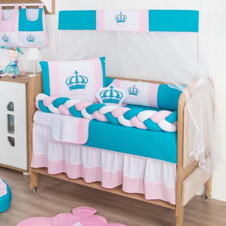 Kit berço azul tiffany Clearance, Kit Trança Imperial Azul Tiffany Menina 12pç +saia +cortina - Gaby Baby Enxovais - No Magalu - Magazine Luiza Clearance
