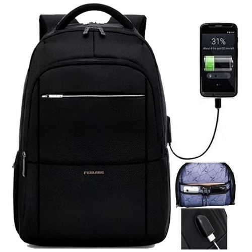 - Mochila masculina preta impermeável resistente com usb clearance