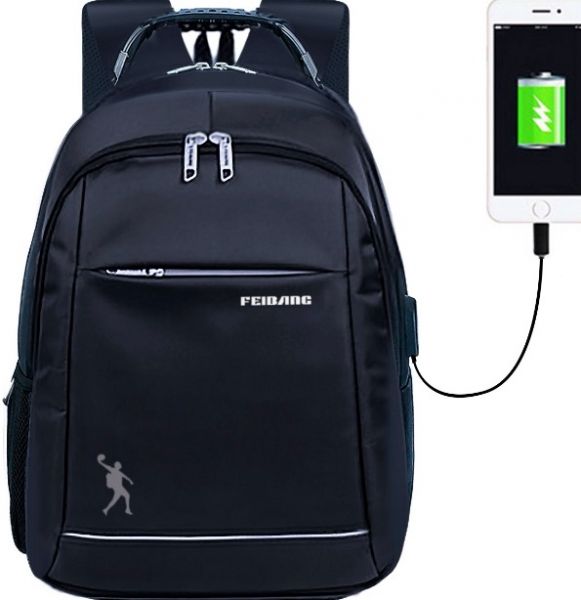 - Mochila masculina preta impermeável resistente com usb outlet
