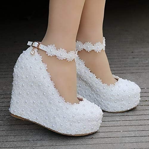 Chaussure compensée dentelle Clearance, Chaussures de mariée en dentelle à talon compensé 5CM, chaussures de mariée, blanches, faites à la main, pompes de robe, taille 35 40, pour filles | AliExpress Clearance