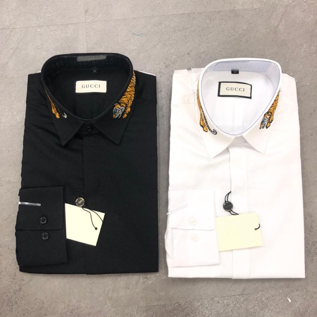 Tiger collar shirt Clearance, Gucci Cotton Embroidered Tiger Collar Clearance