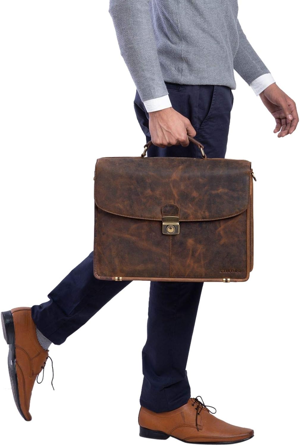 Serviette de travail homme Clearance, STILORD Quintus Serviette Ordinateur Homme Cuir Véritable Vintage Cartable pour Homme Sac à Bandoulière Porte-Documents A4 Mallette pour Enseignant Travail Couleur:sépia Marron Porte-documents et sacs ordinateur Mallettes Clearance