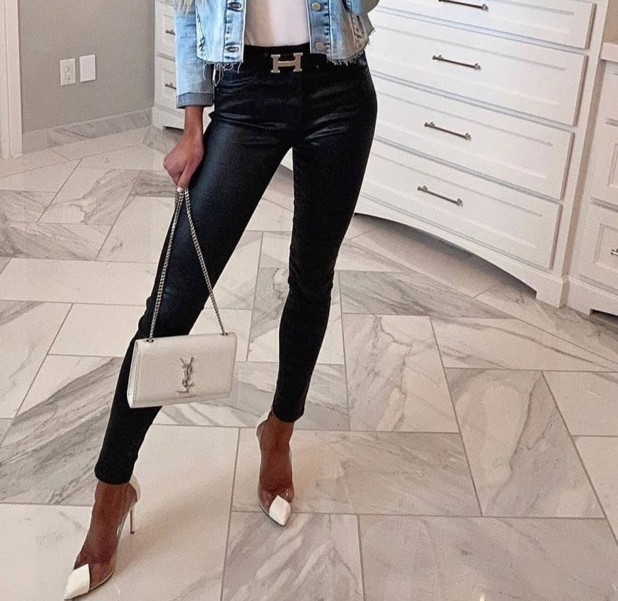 Pantalon engomado negro Clearance