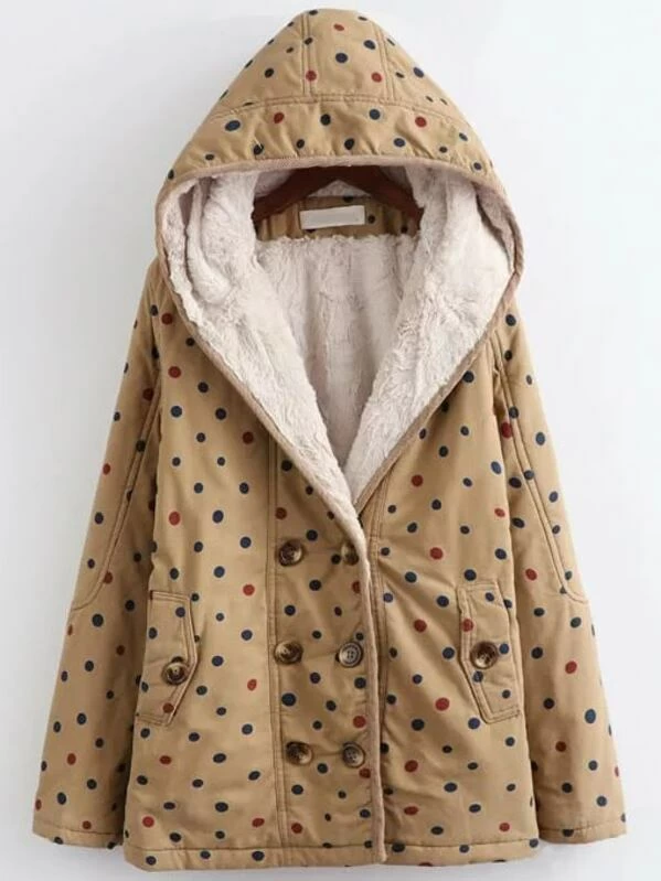 Abrigo lunares mujer Clearance, Abrigo a lunares con capucha y forro de borreguito - kaki | Mode de Mujer | SHEIN España Clearance