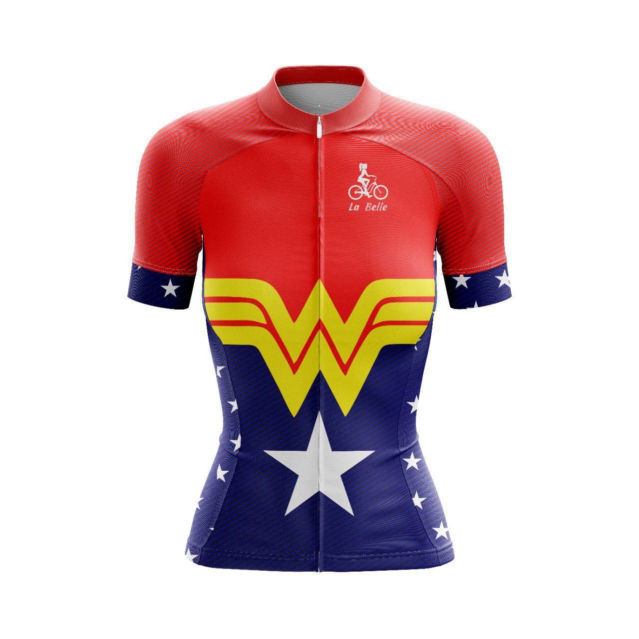 Camisa ciclismo feminina mulher maravilha Clearance