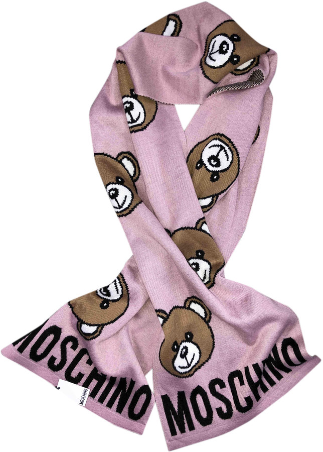 Moschino pink scarf Clearance, Moschino Teddy Bears Wool Scarf Pink/Grey Clearance