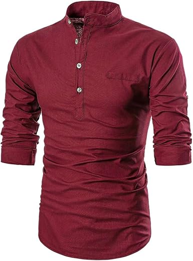 Chemise sans bouton homme Clearance, Chemise pour homme à manches longues sans col Henley boutons T-shirt 100% coton | eBay Clearance