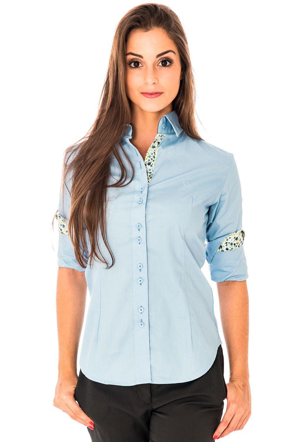Camisa social feminina slim fit Clearance, Camisa Social Feminina Manga 3/4 Estilo Romênia - Lojas Norton Clearance