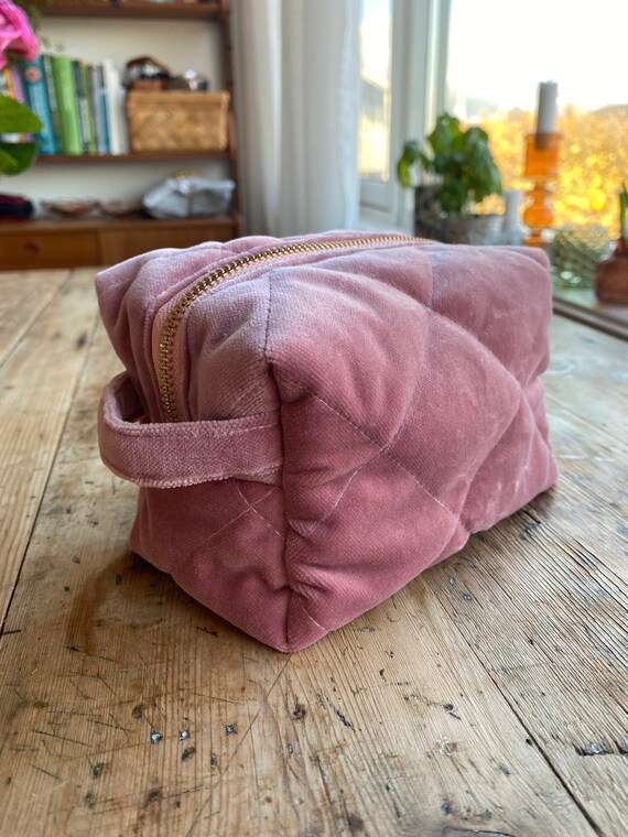 Quilted toiletry bag Clearance, Pink Velvet Quilted Toiletry Bag Makeup Clearance