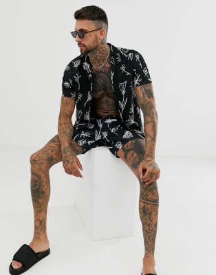 Ensemble maillot de bain chemise homme Clearance, ASOS DESIGN - Ensemble chemise et short de bain à imprimé fleuri dessiné à la main | ASOS Clearance