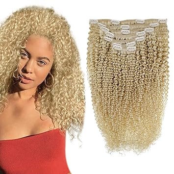 - Blonde kinky curly clip in hair extensions sale