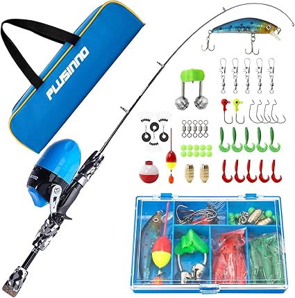 Plusinno kids fishing pole with spincast Clearance, PLUSINNO Kids Fishing Pole,Portable Clearance
