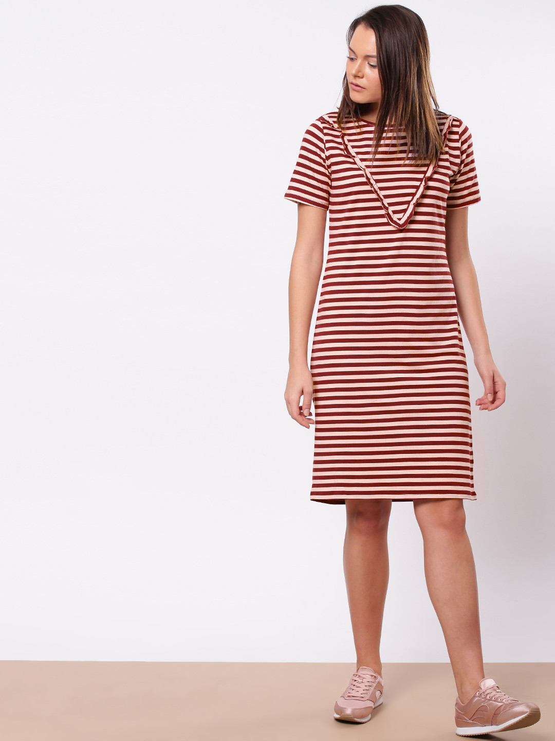 - Maroon striped t shirt dress shop