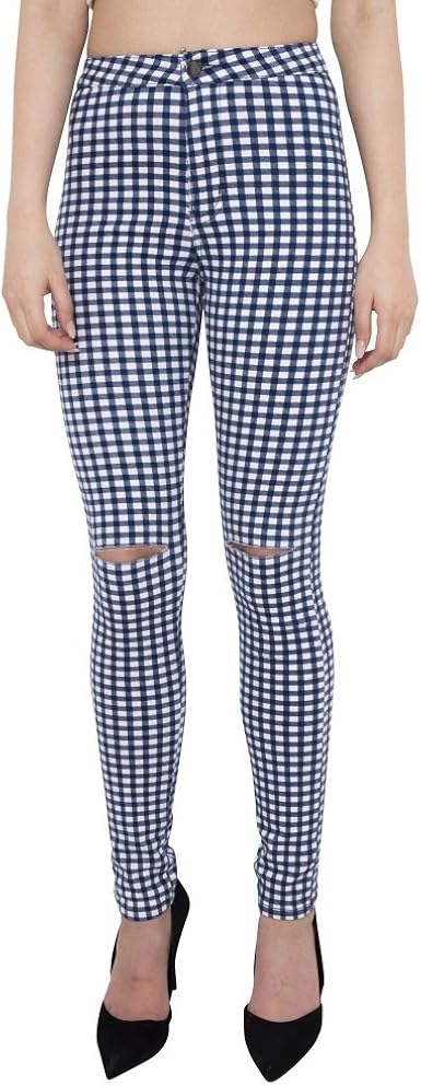 Jeans de cuadros mujer Clearance, Amazon.com: Miss Foxy Mujer Cuadros Talle Alto Ripped Skinny Jeans en color azul, 14, Azul: Clothing Clearance