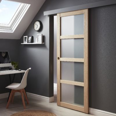 Porte coulissante castorama bois Clearance, Porte coulissante plaquée chêne 4 panneaux H.204 x l.83 cm | Castorama Clearance