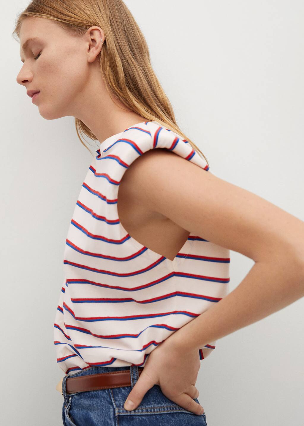 Camiseta rayas hombreras Clearance, Camiseta rayas hombreras - Mujer | Mango España Clearance