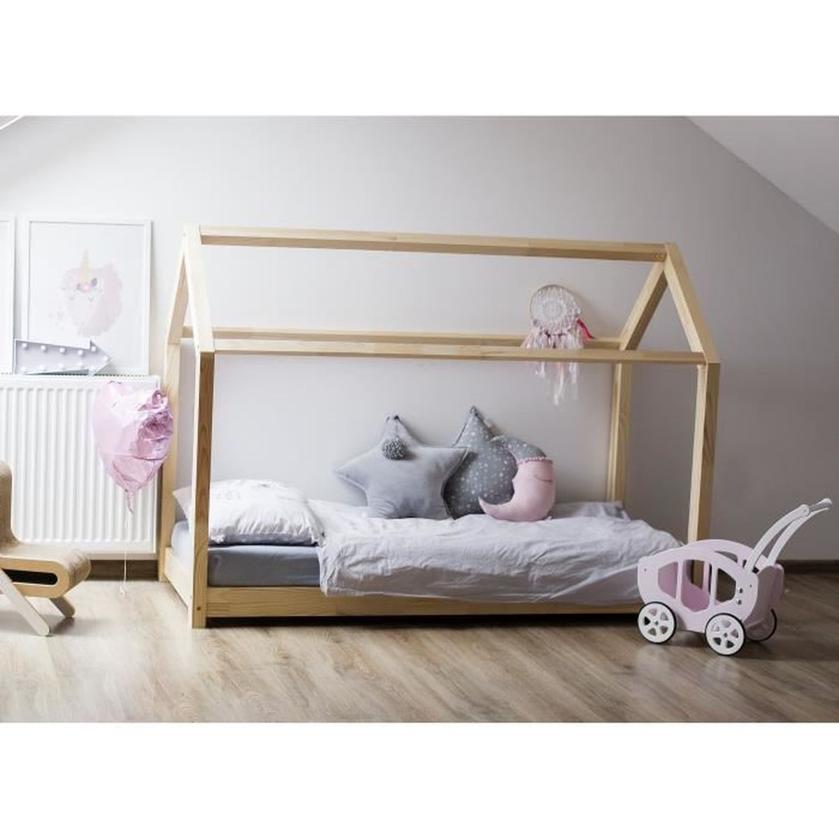 Lit cabane 120x200 Clearance, Lit cabane Bella avec barrière 120 x 200cm - Monlitcabane.fr Clearance