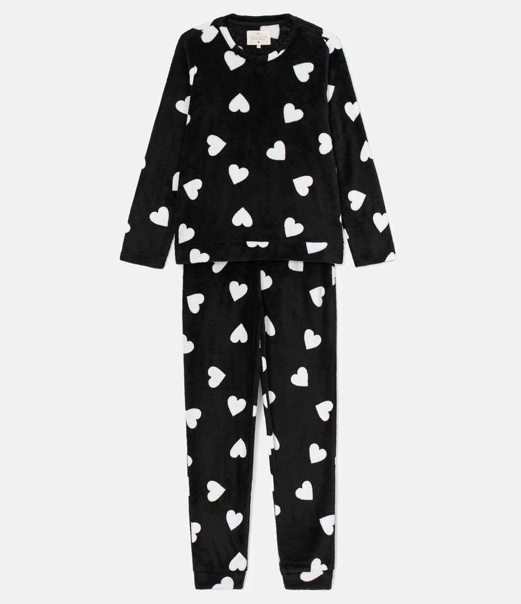 Renner pijama manga longa Clearance, Pijama Blusa Manga Longa e Calça em Moletom com Estampa de Corações Rosa Clearance