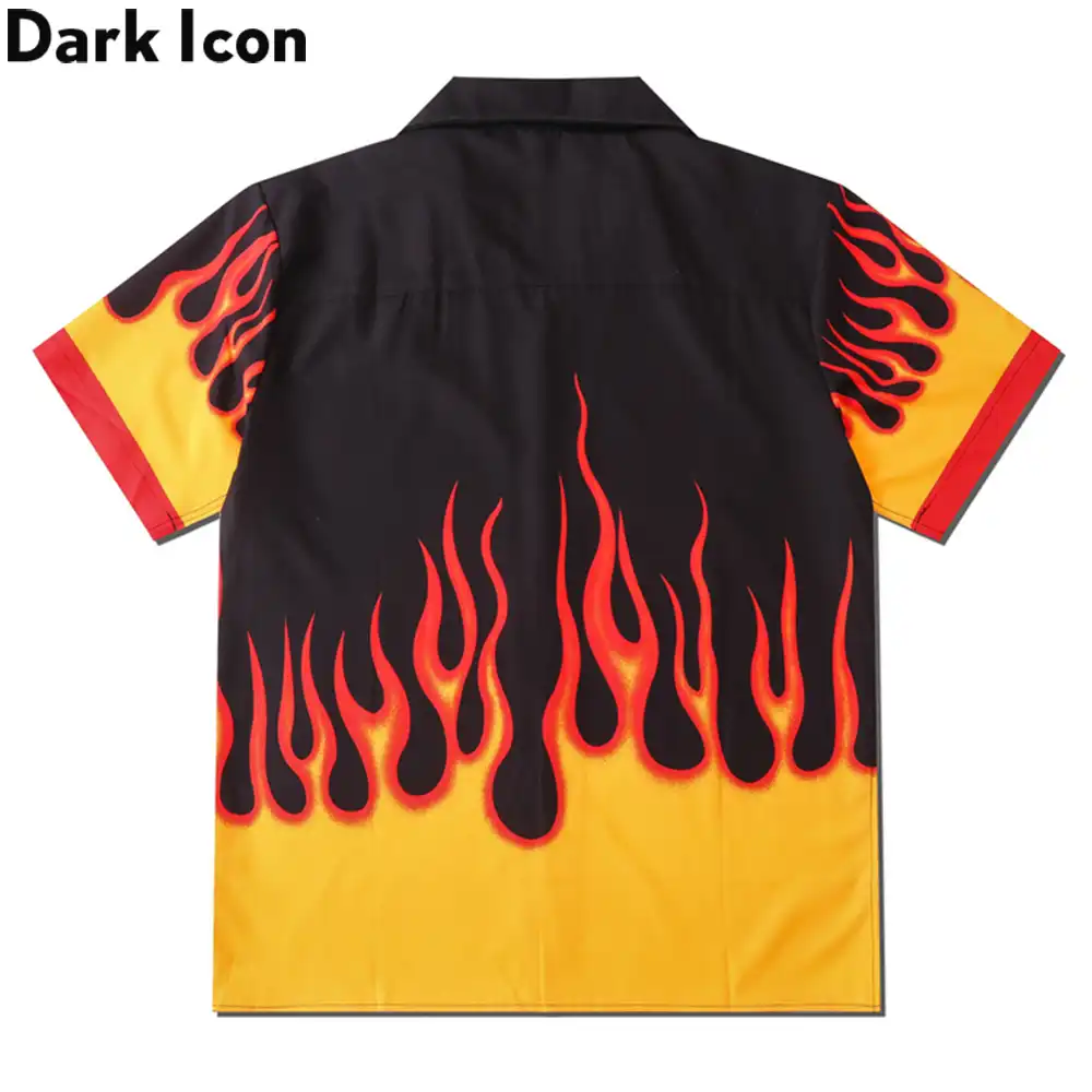Chemise flamme homme Clearance, Bershka - Chemise décontractée en viscose à manches courtes avec imprimé flammes - Noir | ASOS Clearance