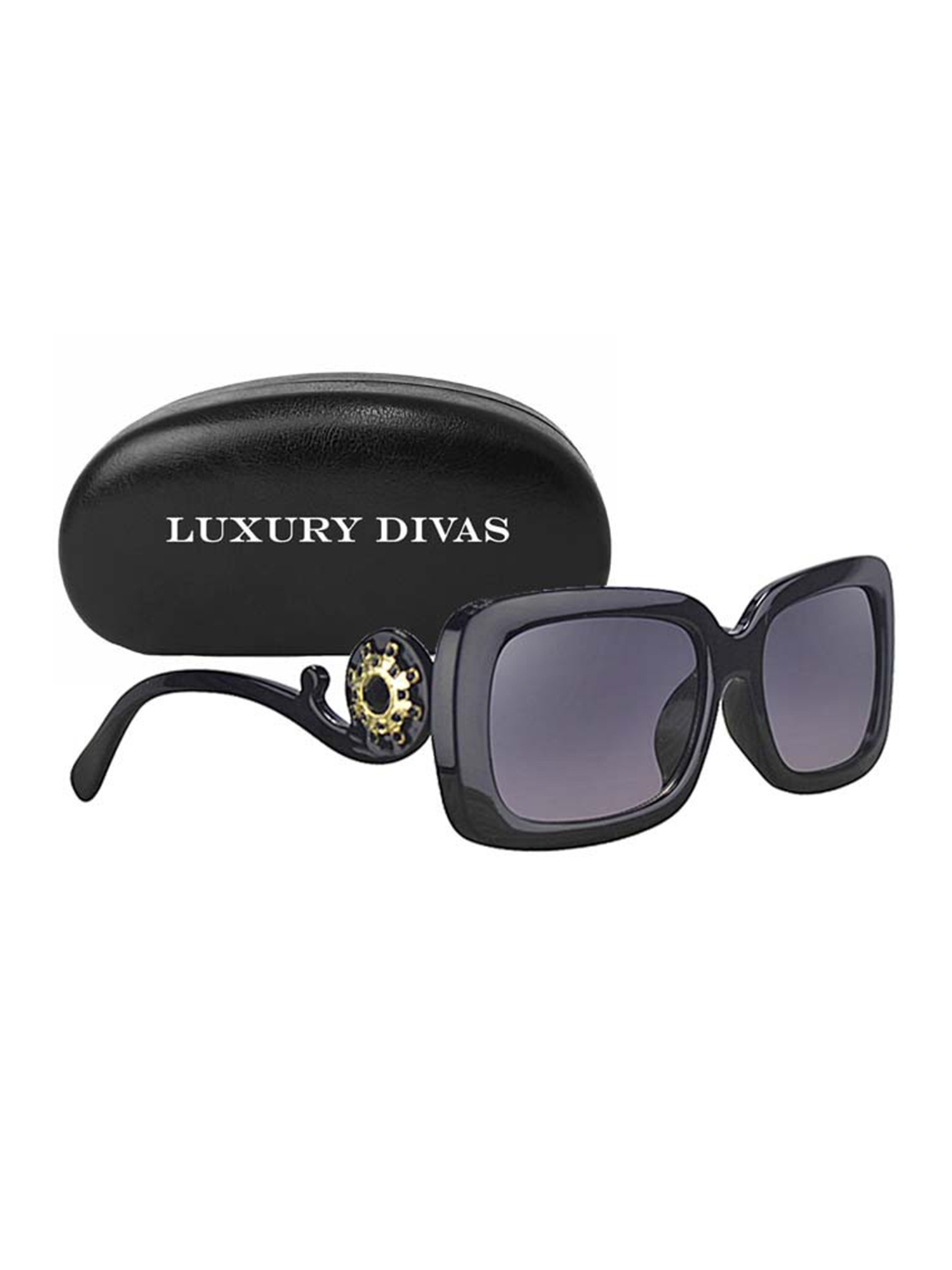 Swirl square sunglasses Clearance, Luxury Divas Square Frame Jeweled Swirl Arm Sunglasses with Hard Case, Size: One size, Black Clearance